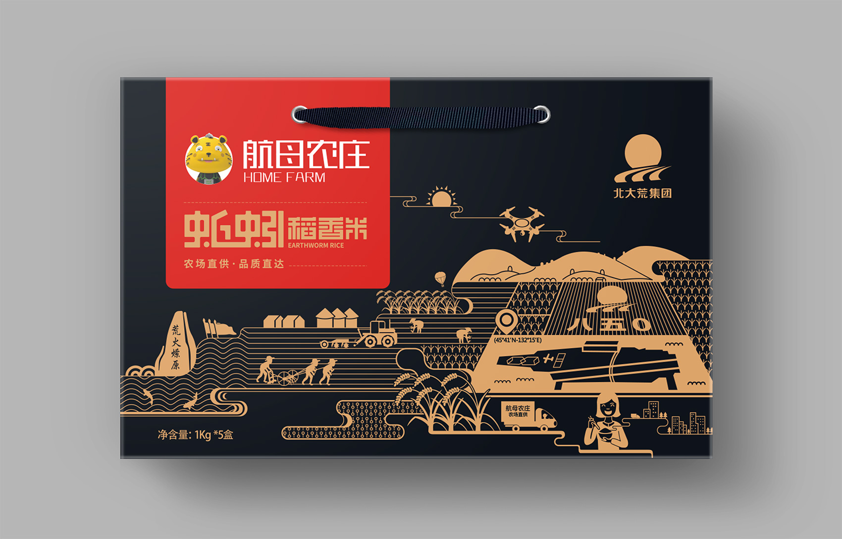 長粒香種植區(qū)位于七星農場,在習近平總書記考察后發(fā)表了著名的中國飯碗中國糧的講話,“北大荒為中國人真正解決溫飽問題發(fā)揮了大作用,我們一定要保護好黑土地,保護好中國飯碗。中國人要把飯碗端在自己手里,而且要裝自己的糧食?!崩_策采用類版畫風格的插畫來表現(xiàn)從農場直接到飯碗中的品牌核心價值,優(yōu)質的綠水青山自然環(huán)境之下生產出高品質好滋味的長粒香,中間的鏤空部分既象征著產品的產地——七星農場,也象征著運送產品的廣闊道路,形成令人記憶深刻的超級符號;在碗中的地標性建筑物代表全國各地,寓意企業(yè)寬廣美好的未來;整體包材采用環(huán)保牛皮紙,在提升了質感與手感的同時,也能在同質化的包裝中脫穎而出。