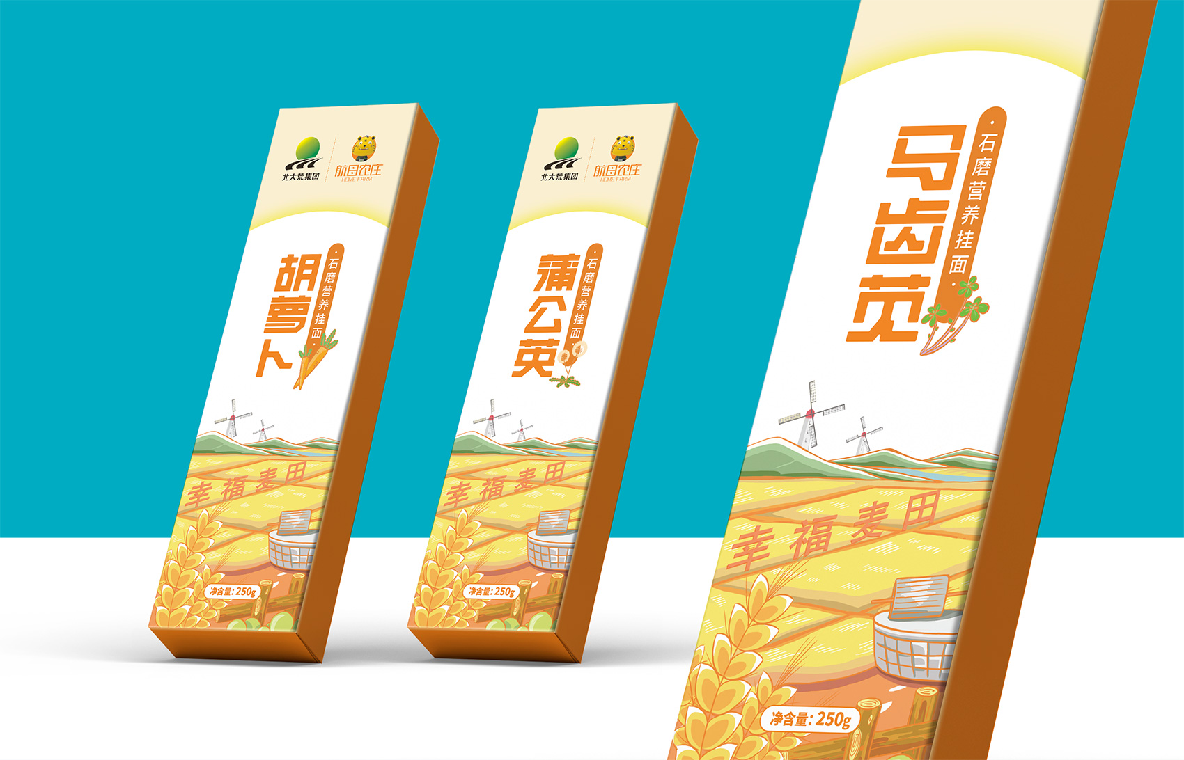 石磨面粉的產地位于有著“小江南”的建邊農場,產品使用傳統(tǒng)石磨加工,在低溫狀態(tài)下研磨面粉,使得面粉中的大部分營養(yǎng)成分得以保留,而這種慢工出細活的生產方式造就了產品的優(yōu)良品質,也與品牌提倡的綠色生活相呼應,繽策將這種慢生活的品牌內核通過手繪插畫進行表達,將攜手相依在夕陽下,遙望燦爛金黃的麥浪翻滾,在周圍青山綠水的環(huán)繞下的幸福場景,色彩飽滿穩(wěn)重,筆觸細膩,讓人浮想聯(lián)翩,仿佛麥香撲面而來。
