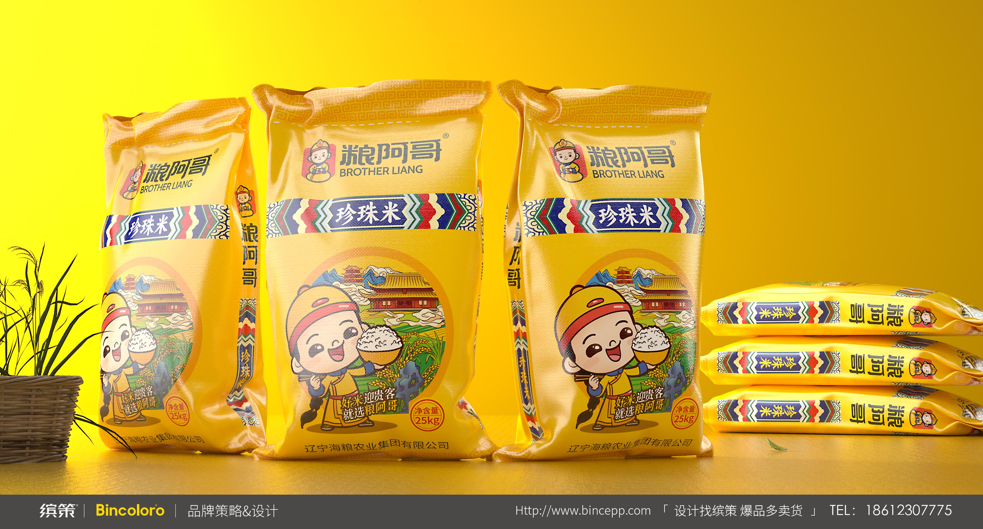 從認(rèn)知-記憶-認(rèn)同-復(fù)購的行為模式上來說,IP化的超級符號能夠吸引眼球,同時也為消費(fèi)者提供尋找品牌產(chǎn)品的依據(jù),也便于記憶與推廣。所以針對糧阿哥具象化的品牌名稱,繽策以傳統(tǒng)皇室阿哥形象為基礎(chǔ),將悠久歷史與品質(zhì)保證等核心價值融入其中,創(chuàng)造出專屬于品牌的可愛IP,系統(tǒng)化植入logo與包裝之中,幫助企業(yè)解決品牌基礎(chǔ)建設(shè)問題,目前產(chǎn)品已成功落地進(jìn)入市場。