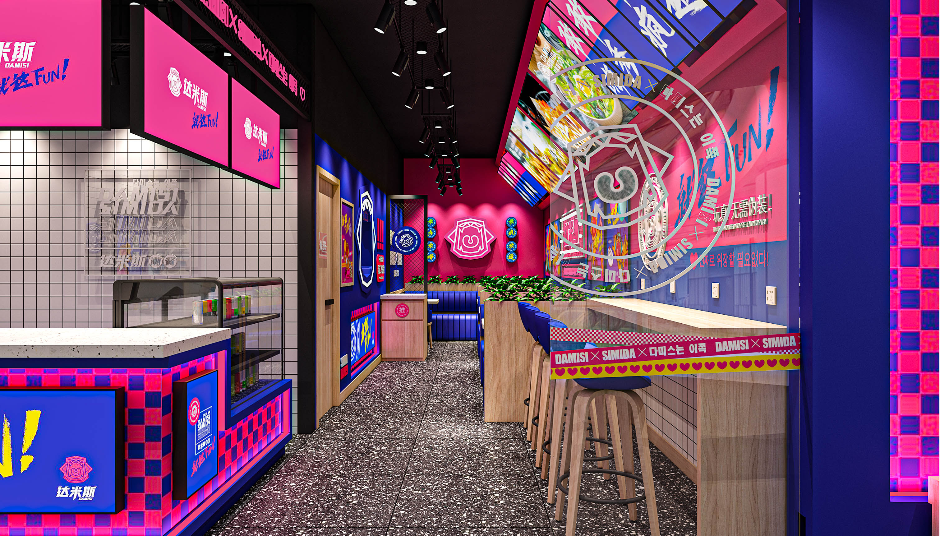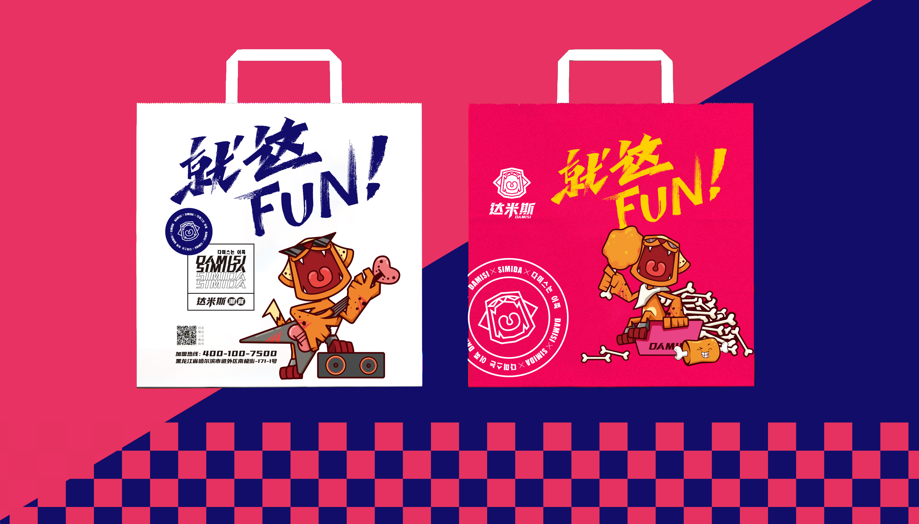 品牌的最總目的就是讓產(chǎn)品或服務(wù)自己在消費(fèi)者心中有力量、有溫度,將大眾轉(zhuǎn)化為品牌的忠實信徒,除了產(chǎn)品過硬以外,品牌內(nèi)核能否引發(fā)共鳴和認(rèn)同才是關(guān)鍵,面向年輕群體尤為如此。所以達(dá)米斯的品牌精神核心就要激發(fā)年輕人的認(rèn)同感,當(dāng)下95-00后年輕群體是互聯(lián)網(wǎng)的原住民,他們樂于嘗試、敢于表達(dá),尤其是對于自我標(biāo)簽和態(tài)度上尤為熱衷,取悅自我、展現(xiàn)個性是他們永恒的話題,通過產(chǎn)品出發(fā),繽策將品牌核心定位于FUN,關(guān)聯(lián)主產(chǎn)品的同時,也包含熱愛、態(tài)度與樂趣的多重含義,將充滿反叛意味的鮮明風(fēng)格融入其中,結(jié)合受年輕人喜愛的IP形象共同打造品牌時尚、潮酷的調(diào)性,青春洋溢、無拘無束的搖滾豹張牙舞爪演繹著達(dá)米斯無所無懼的姿態(tài),張開的大嘴極富趣味性。同時將IP元素系統(tǒng)地植入物料及空阿金,對比突出、層次鮮明。從視覺層面、營銷賣點及品牌調(diào)性上全面與競品形成差異化表現(xiàn),使其脫穎而出。