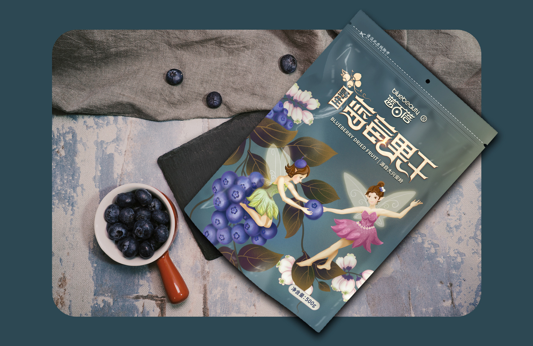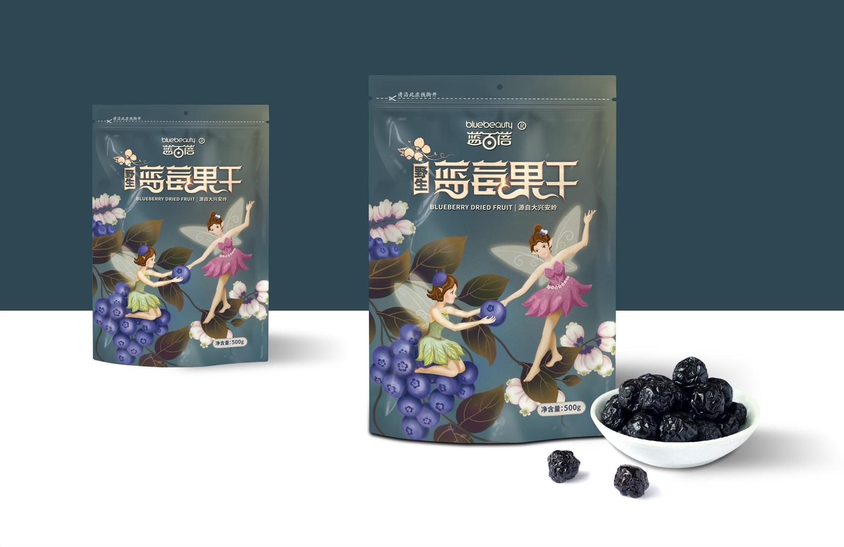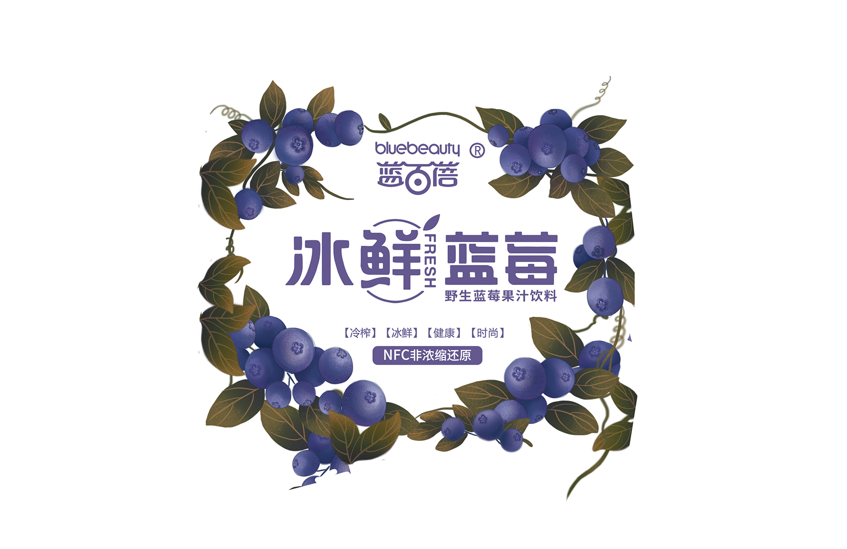 經(jīng)過繽策與企業(yè)方負責人的溝通及信息收集整理,產(chǎn)品定位主要以電商銷售為主,面向的群體也是年輕人士和熱愛藍莓的健康人士。基于繽策對市場的了解,制定出清新、簡約、特質(zhì)的包裝設(shè)計方案。配合主題的需要,副品字體也進行了重新設(shè)計。以主題“藍莓仙子的愛”進行創(chuàng)意插畫,并希望點亮消費者內(nèi)心喜愛的火焰。