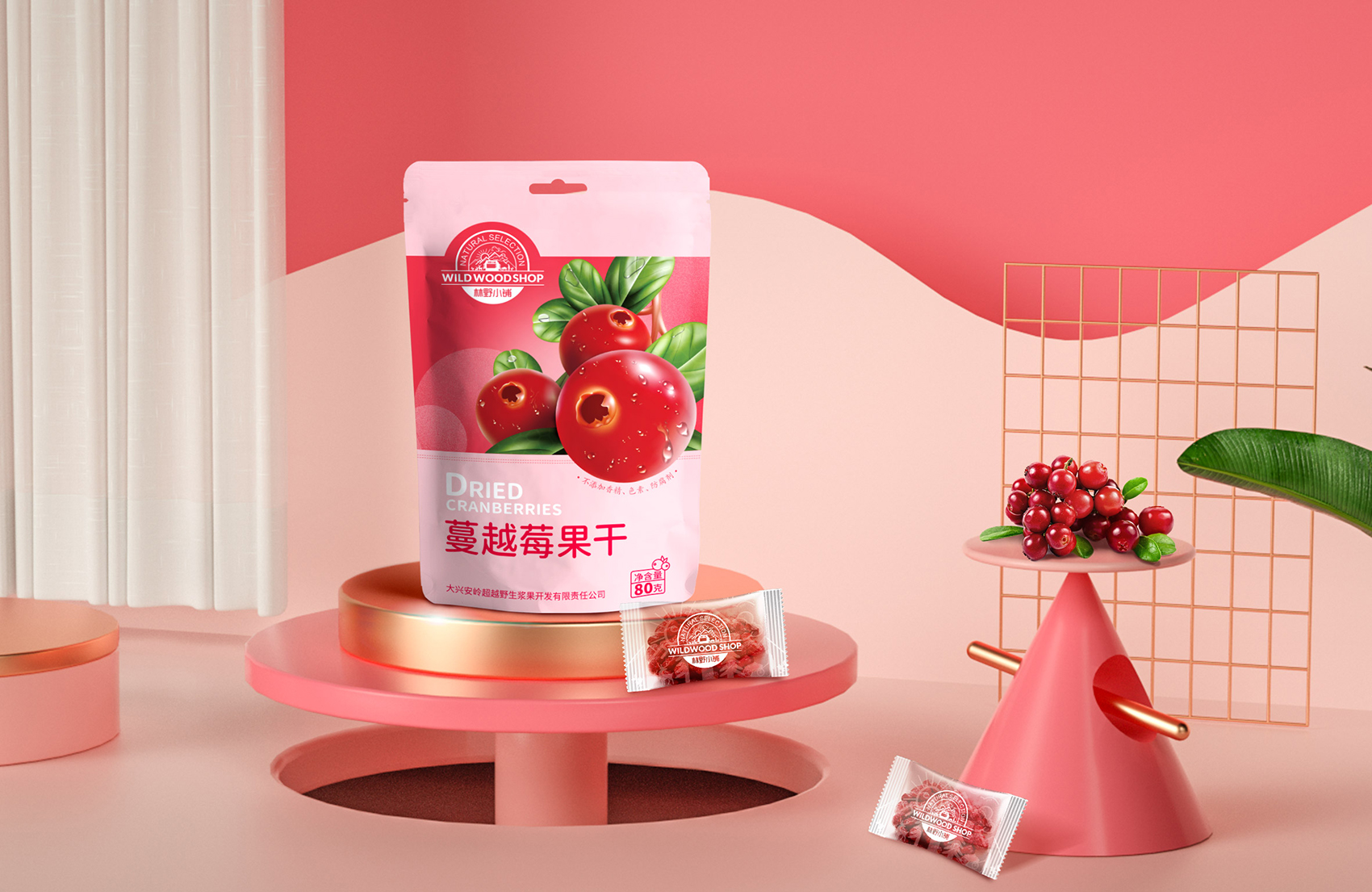 過詳盡的線上與線下調研,繽策發(fā)現莓類果干細分市場下,主流產品包裝以商業(yè)攝影為主,以實物來引發(fā)消費者聯(lián)想,以食欲策略促進購買。但由于同質化因素影響,很難讓消費者區(qū)別品牌之間的差異,消費者自然走向了價格傾向,所以與眾不同并凸顯品牌的存在是現階段幫助林野小屋脫穎而出的關鍵。繽策將插畫植入其中,以逼真的寫實3D風格展示品牌的獨一無二,在美觀的同時,讓人也能記住品牌,清晰簡潔的版式重點突出,讓人賞心悅目,幫助品牌凸顯產品的品質與格調,便于推廣與傳播。