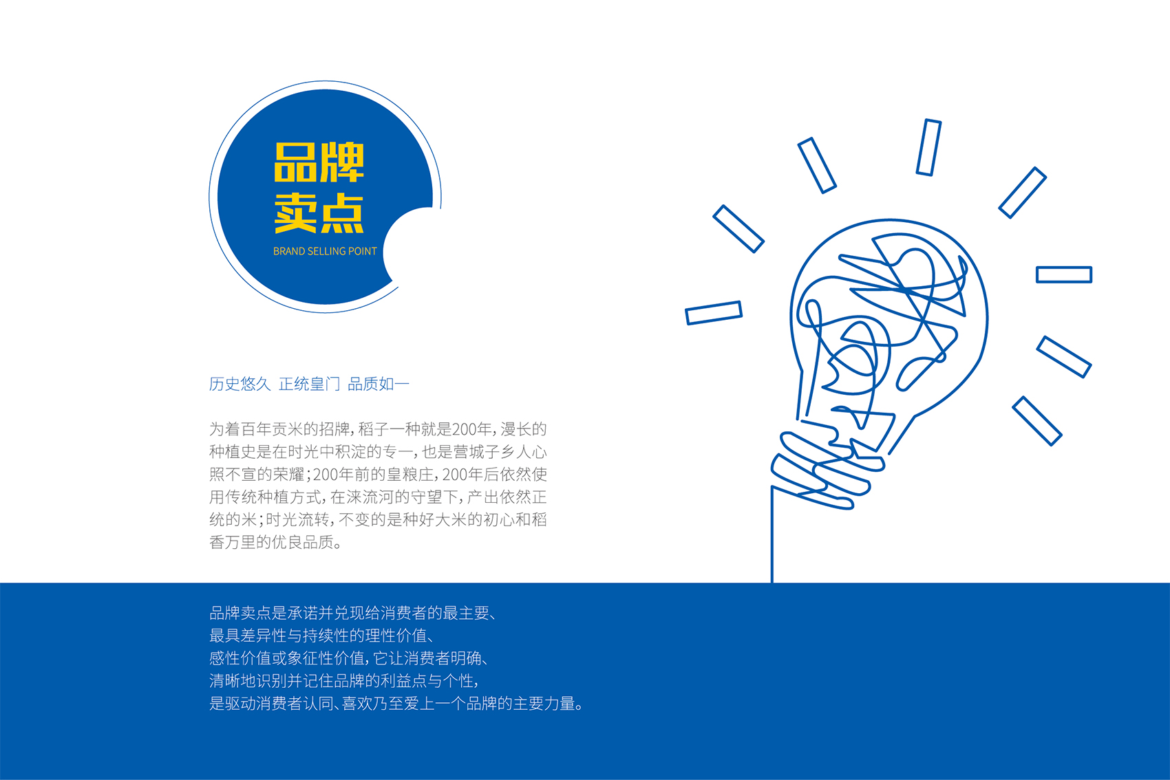 作為品牌的核心競爭力,品牌文化需要彰顯產(chǎn)品自身的特點和與眾不同的差異化存在,結合創(chuàng)始人的發(fā)心與愿景,創(chuàng)造出具有獨特價值的文化系統(tǒng)。繽策團隊在與企業(yè)座談中了解到五常市營城子滿族鄉(xiāng)自唐興起,清代正始,歷經(jīng)200個春夏秋冬,世代種植貢米的悠久歷史,是品牌所具備的獨一無二的天然優(yōu)勢,同時也是產(chǎn)品品質(zhì)值得信賴的根源所在。這使得皇糧根兒有機大米采用滿族傳統(tǒng)種植方式,進行有機種植,杜絕農(nóng)藥化肥,傳統(tǒng)的生物除蟲人工除草,精耕細作保證產(chǎn)品品質(zhì)。這也成為了皇糧根兒品牌文化的出發(fā)點與落腳點。