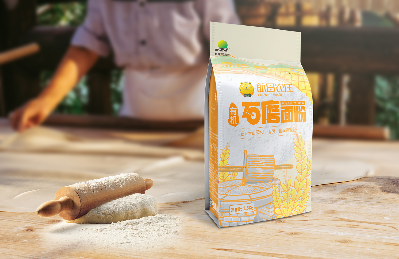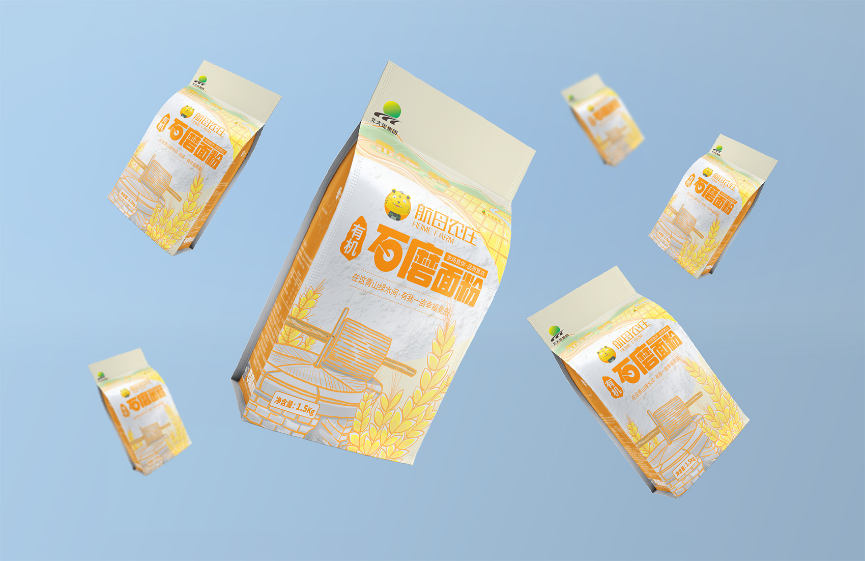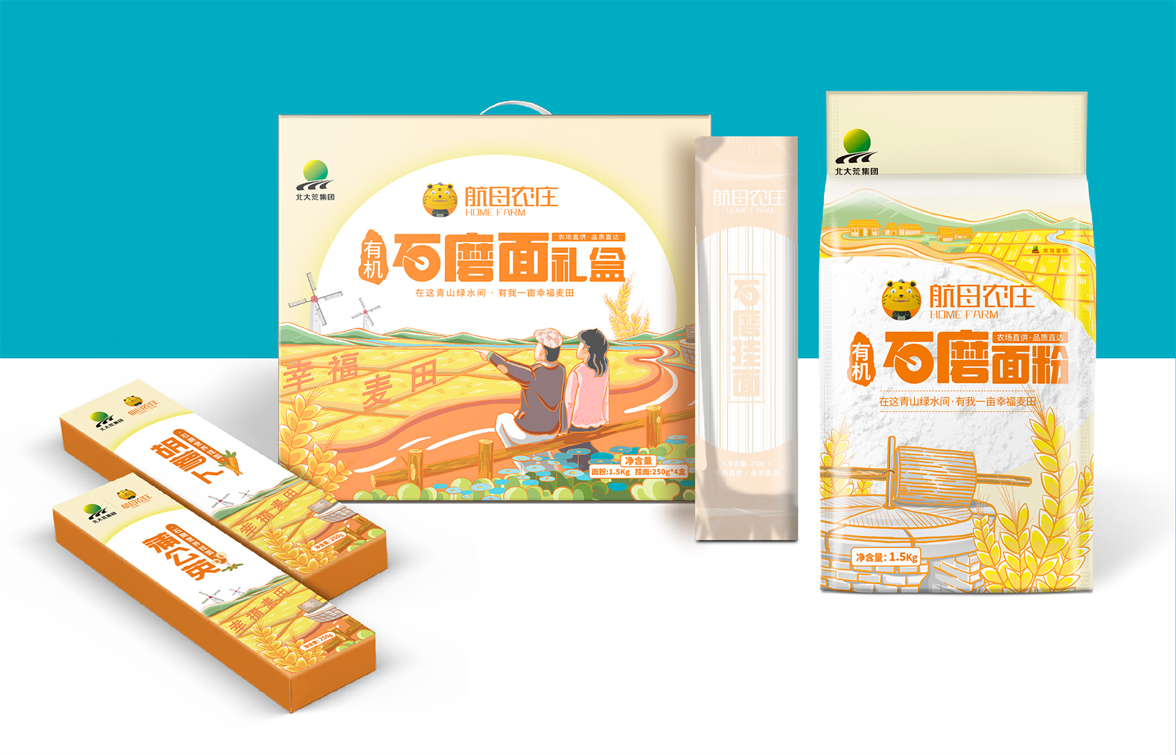 石磨面粉的產地位于有著“小江南”的建邊農場,產品使用傳統(tǒng)石磨加工,在低溫狀態(tài)下研磨面粉,使得面粉中的大部分營養(yǎng)成分得以保留,而這種慢工出細活的生產方式造就了產品的優(yōu)良品質,也與品牌提倡的綠色生活相呼應,繽策將這種慢生活的品牌內核通過手繪插畫進行表達,將攜手相依在夕陽下,遙望燦爛金黃的麥浪翻滾,在周圍青山綠水的環(huán)繞下的幸福場景,色彩飽滿穩(wěn)重,筆觸細膩,讓人浮想聯(lián)翩,仿佛麥香撲面而來。