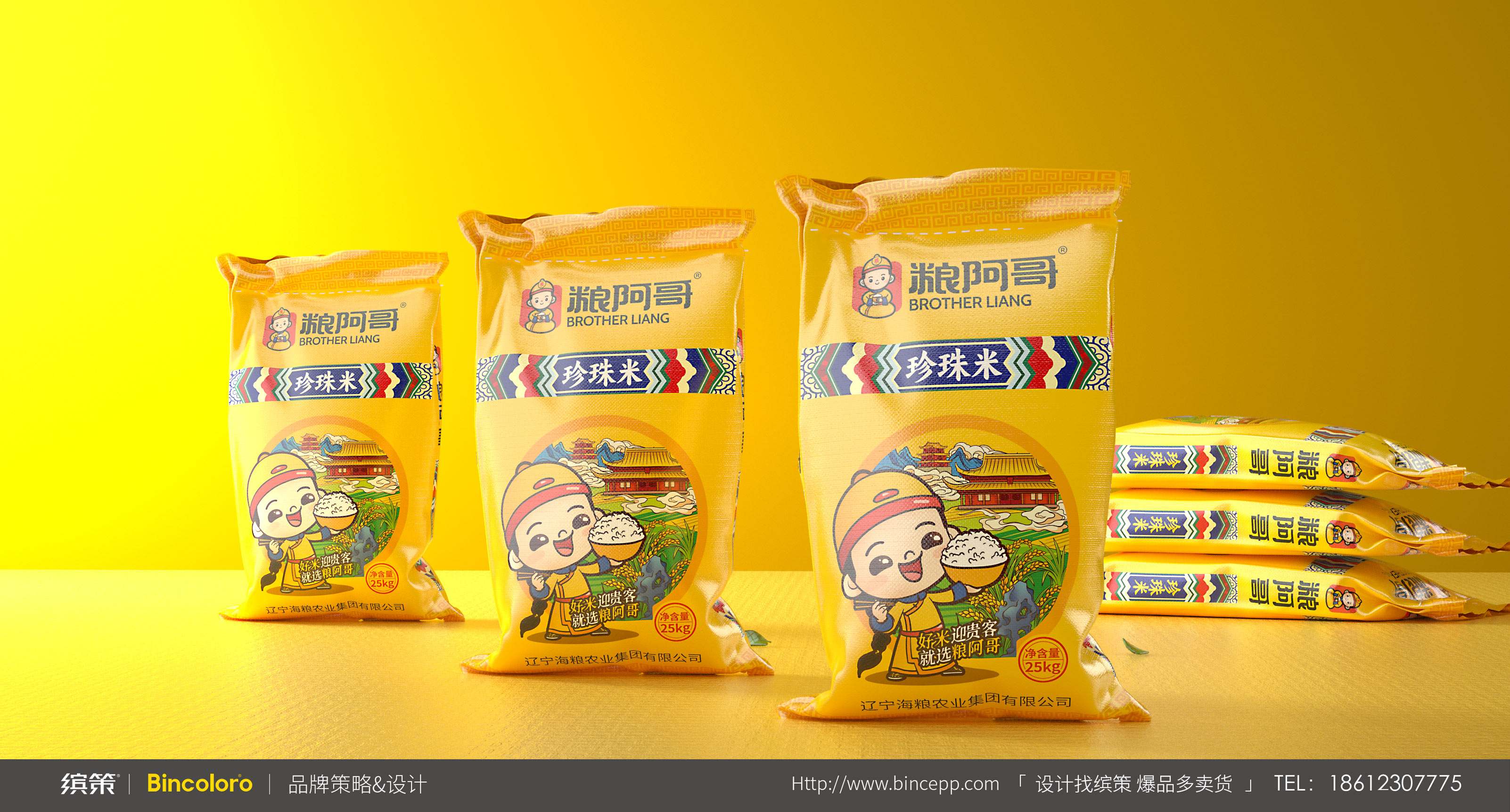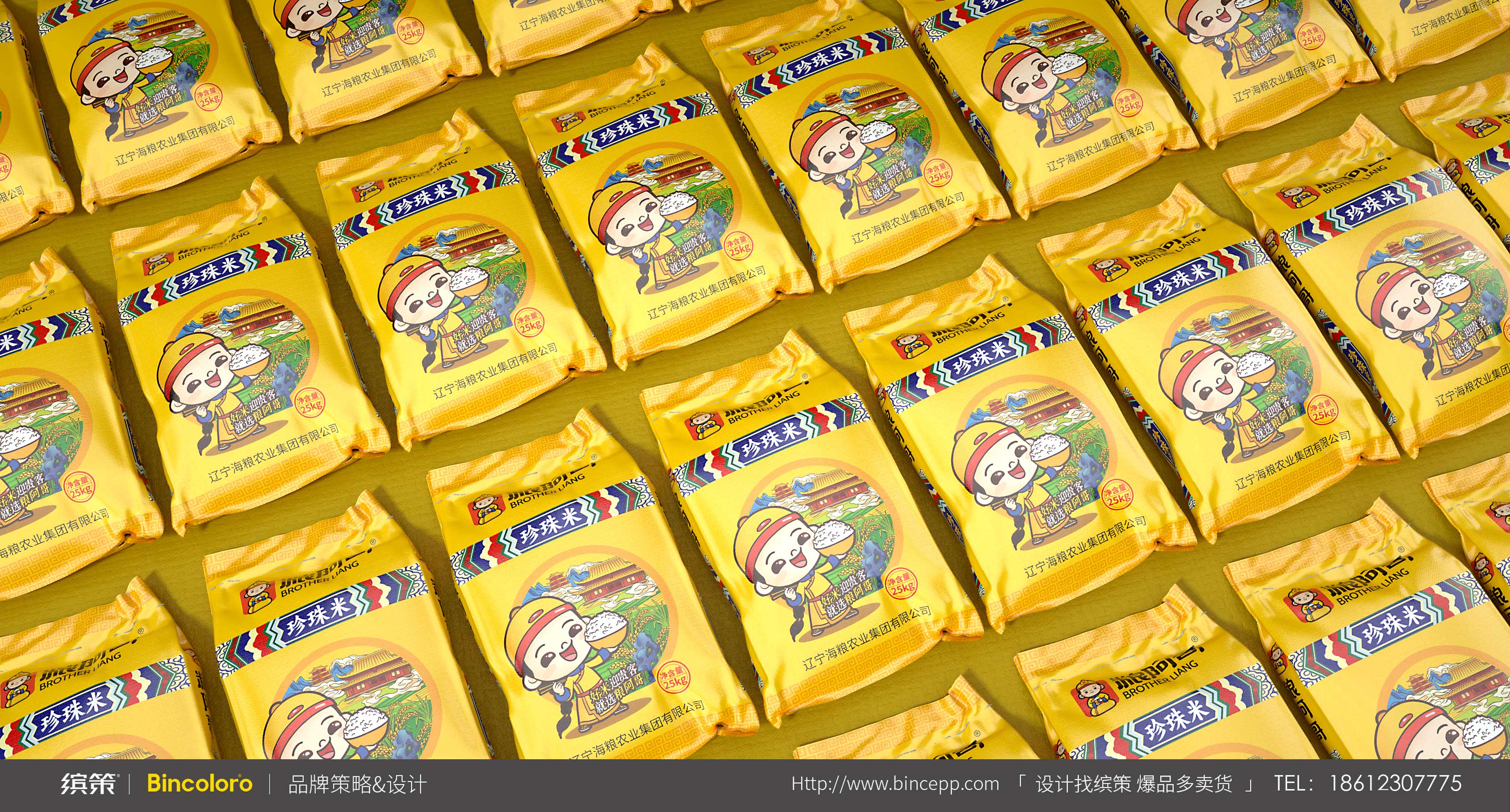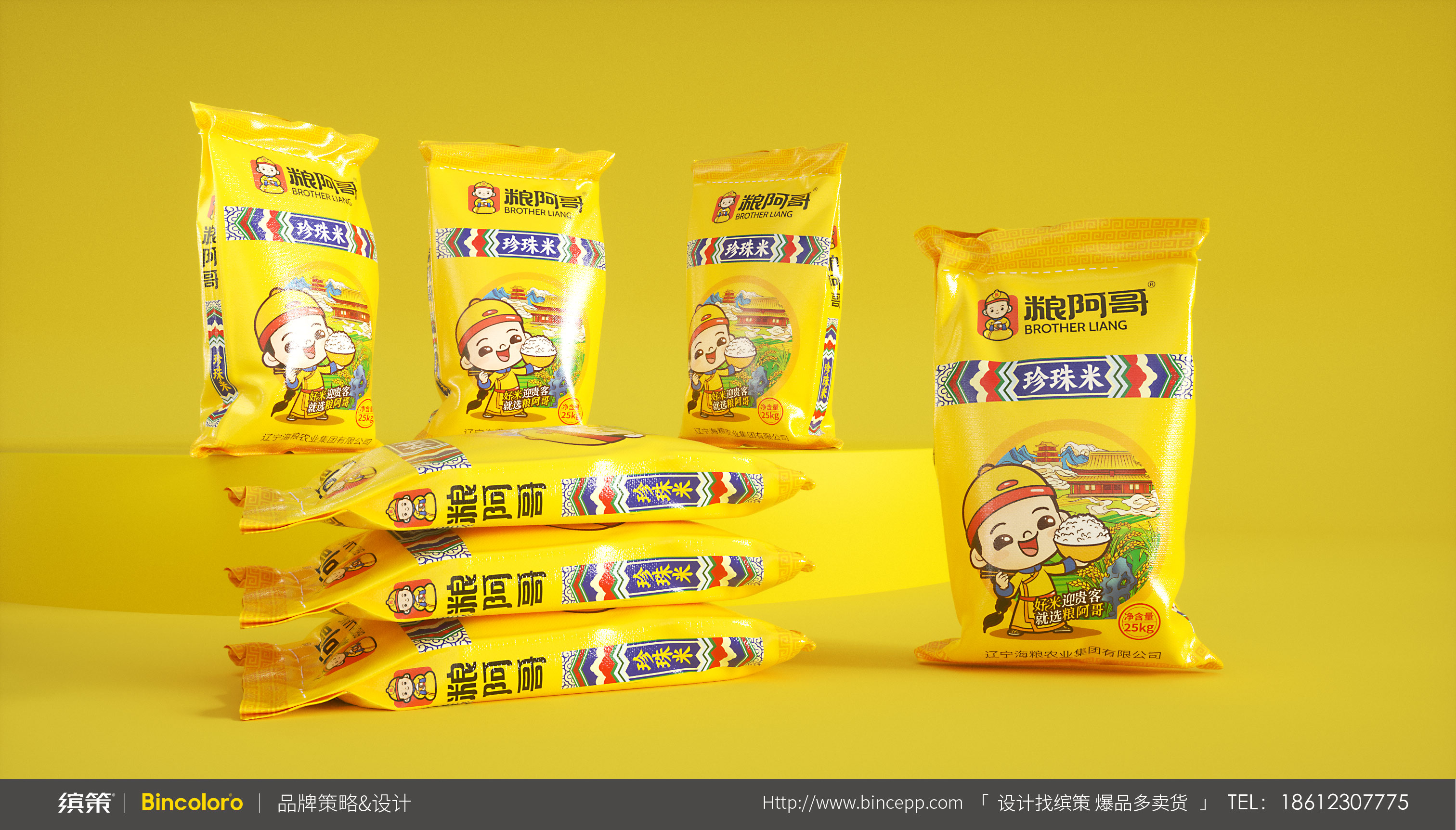 從認(rèn)知-記憶-認(rèn)同-復(fù)購的行為模式上來說,IP化的超級符號能夠吸引眼球,同時也為消費(fèi)者提供尋找品牌產(chǎn)品的依據(jù),也便于記憶與推廣。所以針對糧阿哥具象化的品牌名稱,繽策以傳統(tǒng)皇室阿哥形象為基礎(chǔ),將悠久歷史與品質(zhì)保證等核心價值融入其中,創(chuàng)造出專屬于品牌的可愛IP,系統(tǒng)化植入logo與包裝之中,幫助企業(yè)解決品牌基礎(chǔ)建設(shè)問題,目前產(chǎn)品已成功落地進(jìn)入市場。