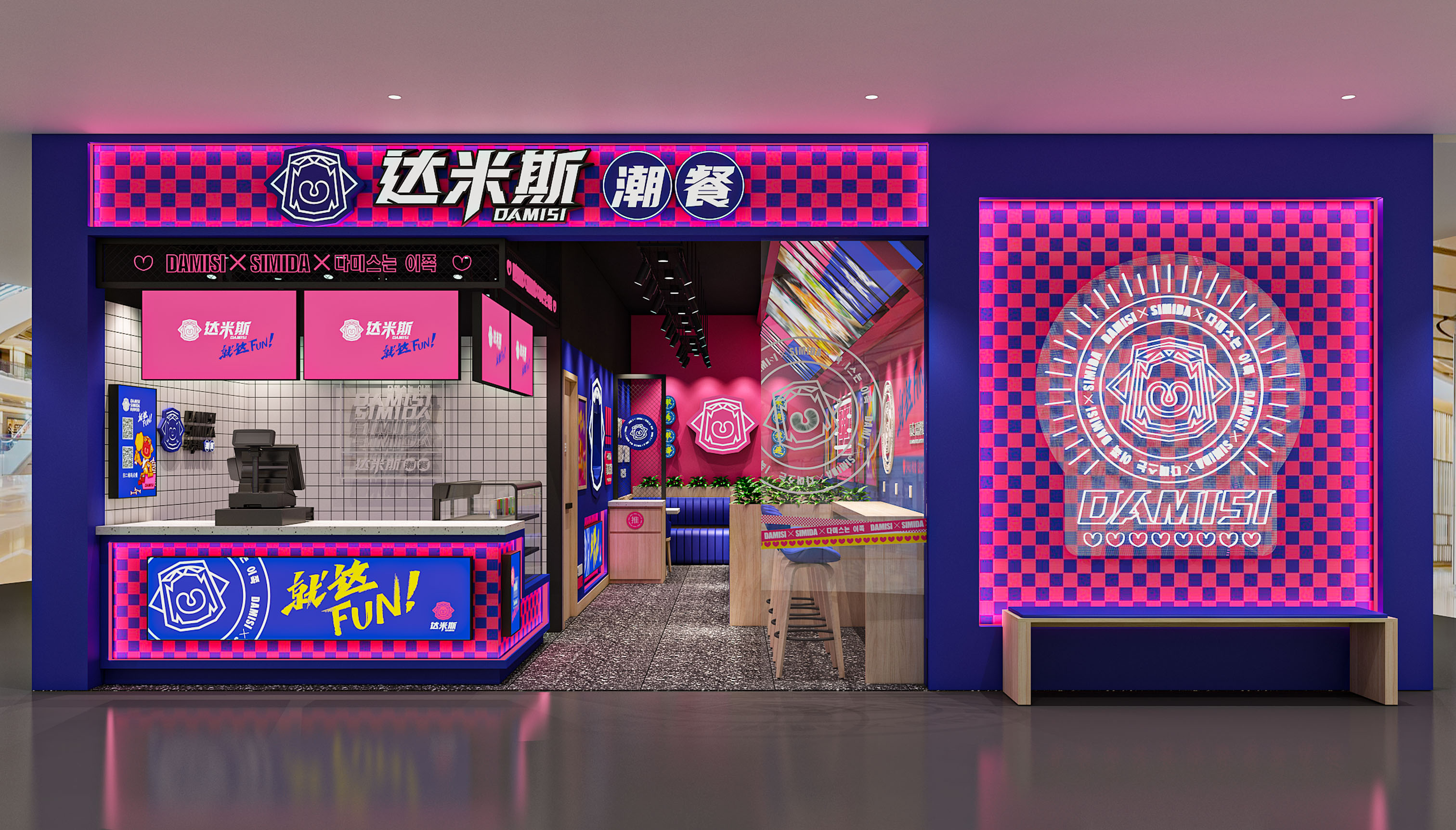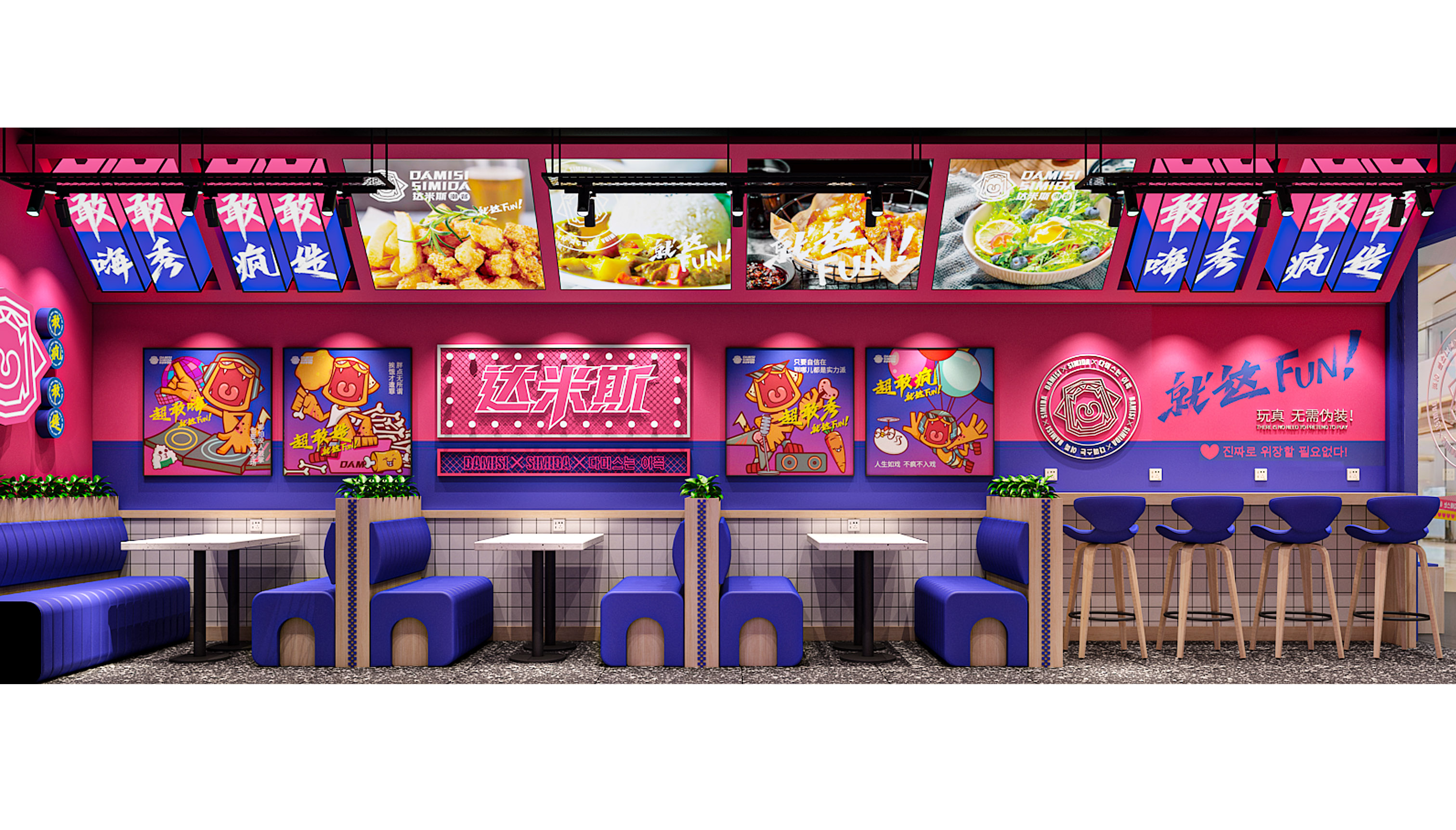 品牌的最總目的就是讓產(chǎn)品或服務(wù)自己在消費(fèi)者心中有力量、有溫度,將大眾轉(zhuǎn)化為品牌的忠實信徒,除了產(chǎn)品過硬以外,品牌內(nèi)核能否引發(fā)共鳴和認(rèn)同才是關(guān)鍵,面向年輕群體尤為如此。所以達(dá)米斯的品牌精神核心就要激發(fā)年輕人的認(rèn)同感,當(dāng)下95-00后年輕群體是互聯(lián)網(wǎng)的原住民,他們樂于嘗試、敢于表達(dá),尤其是對于自我標(biāo)簽和態(tài)度上尤為熱衷,取悅自我、展現(xiàn)個性是他們永恒的話題,通過產(chǎn)品出發(fā),繽策將品牌核心定位于FUN,關(guān)聯(lián)主產(chǎn)品的同時,也包含熱愛、態(tài)度與樂趣的多重含義,將充滿反叛意味的鮮明風(fēng)格融入其中,結(jié)合受年輕人喜愛的IP形象共同打造品牌時尚、潮酷的調(diào)性,青春洋溢、無拘無束的搖滾豹張牙舞爪演繹著達(dá)米斯無所無懼的姿態(tài),張開的大嘴極富趣味性。同時將IP元素系統(tǒng)地植入物料及空阿金,對比突出、層次鮮明。從視覺層面、營銷賣點及品牌調(diào)性上全面與競品形成差異化表現(xiàn),使其脫穎而出。