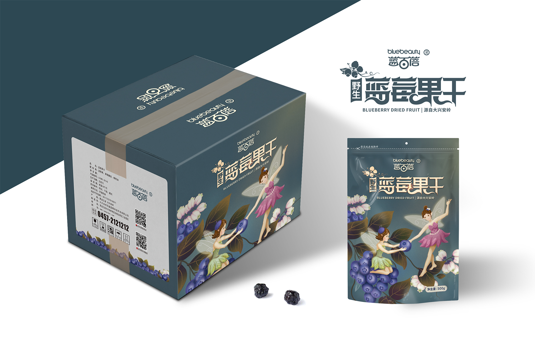 經(jīng)過繽策與企業(yè)方負責人的溝通及信息收集整理,產(chǎn)品定位主要以電商銷售為主,面向的群體也是年輕人士和熱愛藍莓的健康人士。基于繽策對市場的了解,制定出清新、簡約、特質(zhì)的包裝設(shè)計方案。配合主題的需要,副品字體也進行了重新設(shè)計。以主題“藍莓仙子的愛”進行創(chuàng)意插畫,并希望點亮消費者內(nèi)心喜愛的火焰。