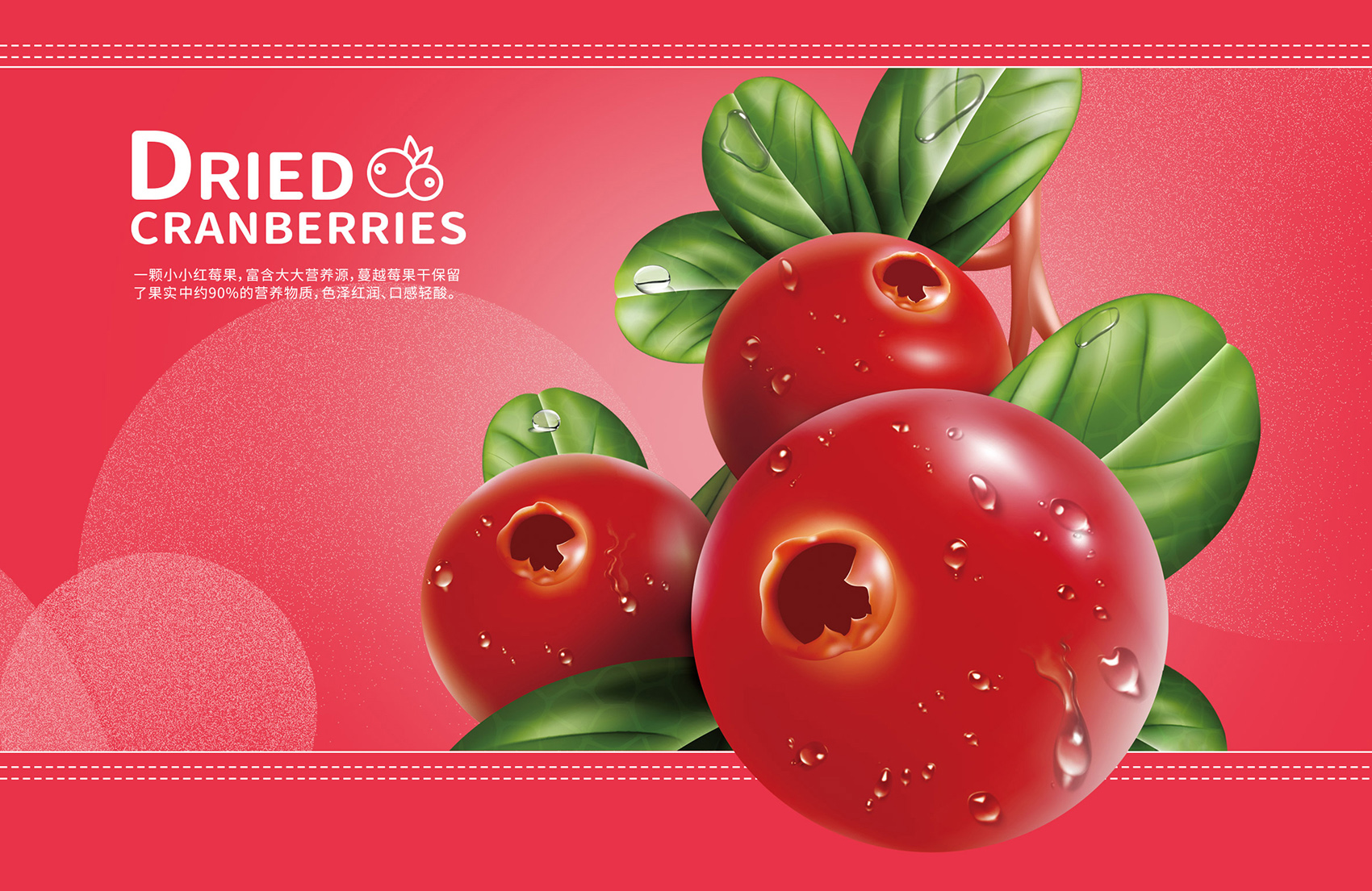 包裝以簡潔突出的版式刻畫了新鮮飽滿的蔓越莓與藍莓,配以與產品同色系主色調,營造出柔和輕快的氛圍,符合目標終端消費者的偏好與審美;將紅潤可愛的果實放置于畫面中間與logo形成互相照應的關系,使整體畫面和諧統(tǒng)一;半寫實的風格配合圓潤規(guī)整的字體,給人以整齊通透之感。修長柔和的袋型與同類產品在視覺上有所區(qū)別,同時便于擺放陳列。整體包裝主體突出,簡約流暢,配色明快,版式大氣,適用性強。