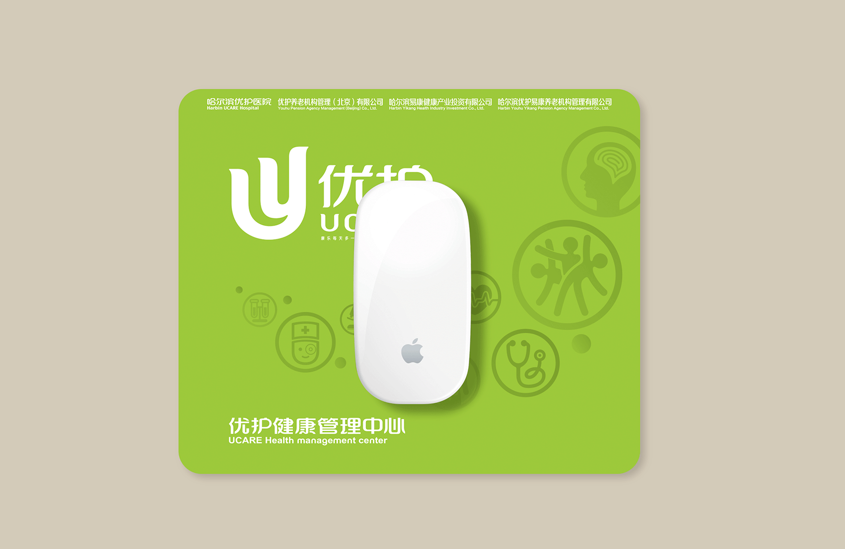 選用同色系的嫩綠作為主色調(diào),一方面凸顯出健康管理中心與優(yōu)護醫(yī)院的關(guān)聯(lián)性,另一方面在視覺上能夠直接了當?shù)姆直娑邊^(qū)別,嫩綠色代表了新生與希望,表達了消費者在健康管理中的人性化關(guān)懷服務(wù)中獲得嶄新的健康狀態(tài)和生活樂趣,將品牌氣質(zhì)與品牌精神通過環(huán)境表達的淋漓盡致。