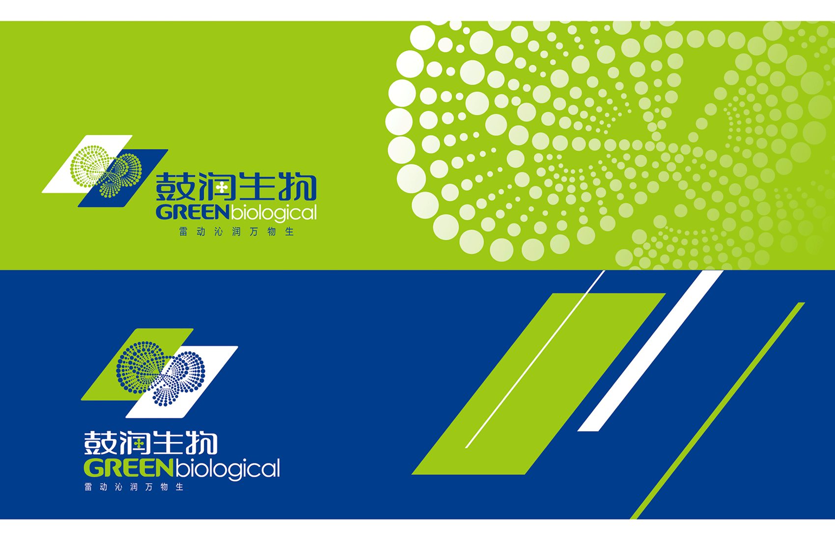 以綠色與藍色色塊為主體,組合成霹靂形狀,將力與美完美地結(jié)合一處,以表現(xiàn)“鼓潤”品牌含義,即雷鳴之聲環(huán)形繼續(xù)了無限能量的生命。圓點紋飾,如明珠般鋪散而出,由大到小漸進式排列,呈現(xiàn)出莫比烏斯環(huán)形。體現(xiàn)沁入大地滋養(yǎng)生命,繽紛璀璨的視覺效果,是鼓潤對生命視如珍寶、充滿感恩的經(jīng)營態(tài)度,與無限發(fā)展的愿景。并形成品牌標準色、輔助色,品牌專用中、英文字體,輔助圖形等VIS(品牌形象視覺識別系統(tǒng))基礎(chǔ)元素。